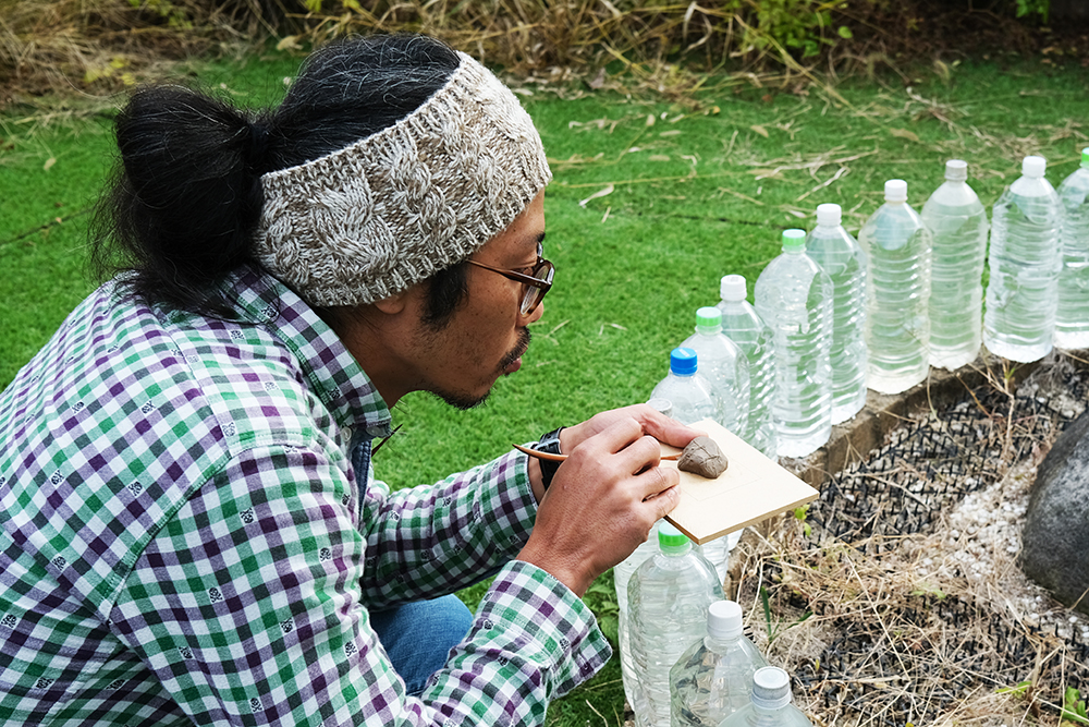 加藤さんはそれぞれの石がある現場を実際に訪れ、数時間かけてじっくり観察しながら微細なヒビ割れや凹凸を粘土で再現します。その後、スタジオに戻って石膏で型取りし、何重もの着彩を施すと、もとの石そっくりな菓子の原型のできあがりです。原型を初めて手にしたEAT&ART TAROさんも驚きと喜びでいっぱいでした。